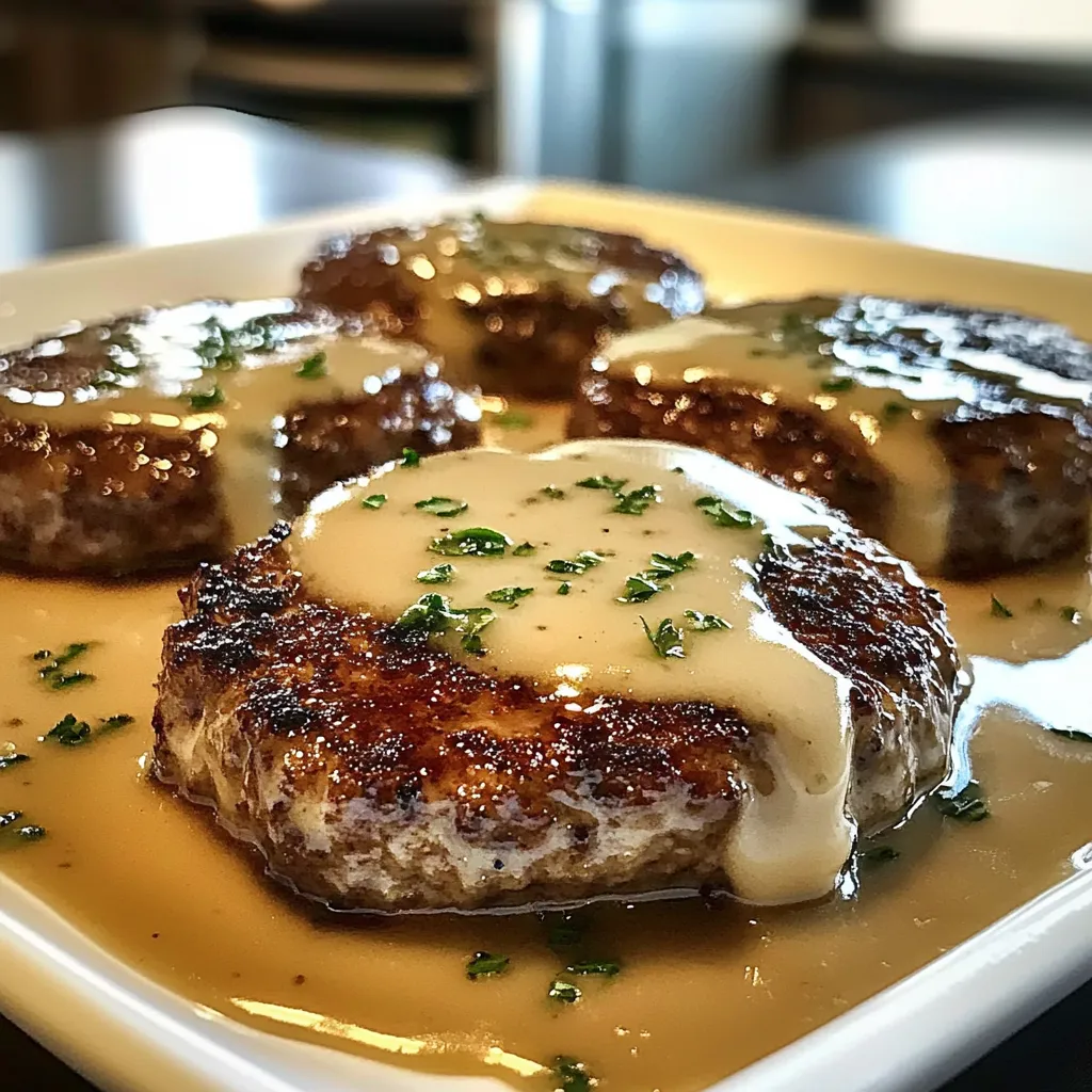 - Make the sauce: In a small bowl, whisk together the cream of mushroom soup, beef broth, and Worcestershire sauce until smooth. Pour this mixture evenly over the patties and vegetables. Oh, the aroma is already divine!
