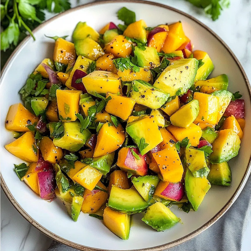 In summary, this avocado and mango salad is a delightful, nutrient-dense dish that can easily become a staple in your recipe repertoire. With its simple ingredients and quick preparation time, it’s perfect for health-conscious individuals seeking vibrant flavors. Don’t forget to share your experiences with this recipe in the comments; we’d love to hear how you personalized it or any tips you might have! Explore more recipes on our blog for more inspiring ideas!