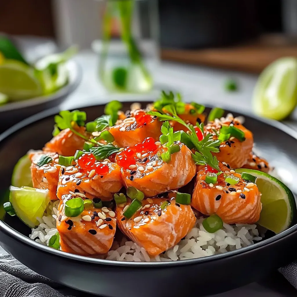 - 1 lb salmon fillet, skin removed and cut into bite-sized pieces