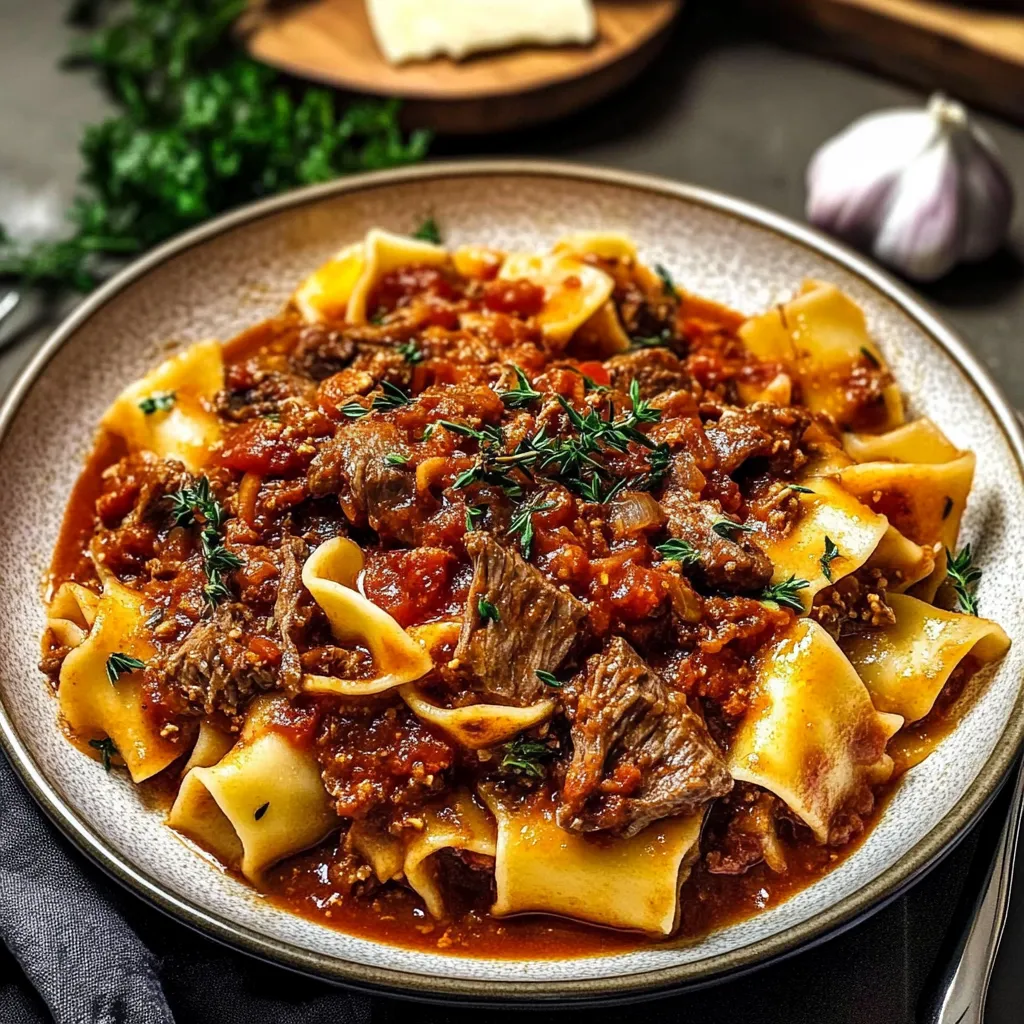 Okay, let’s talk about serving! I absolutely love to pair my beef ragu with a big bowl of al dente pasta—spaghetti or tagliatelle are both unbeatable options. Don’t forget a hunk of crusty bread on the side; it’s perfect for scooping up the leftover sauce! A simple green salad with a citrus vinaigrette complements the richness of the ragu beautifully, adding a refreshing crunch.