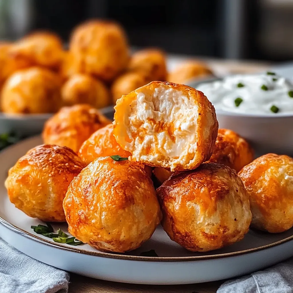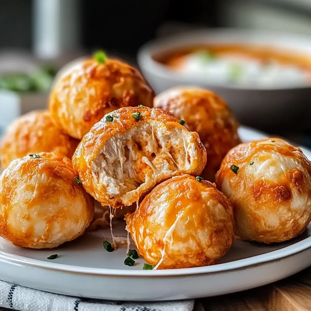 These Buffalo Chicken Bombs are such a treat, and they shine at any gathering! I love serving them with a side of crispy celery sticks and carrots for that classic buffalo wing pairing. You could also whip up a light salad to balance the richness and complement the flavors. Or, for the ultimate indulgence, serve them alongside some creamy mac and cheese. And hey, if you’ve got some friends over, why not break out the drinks too? A cold beer or a fizzy soda pairs perfectly with that zesty kick!