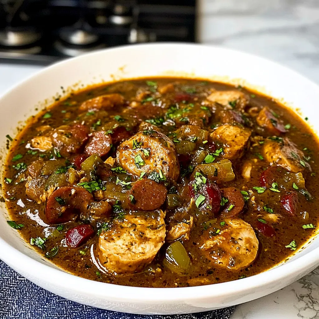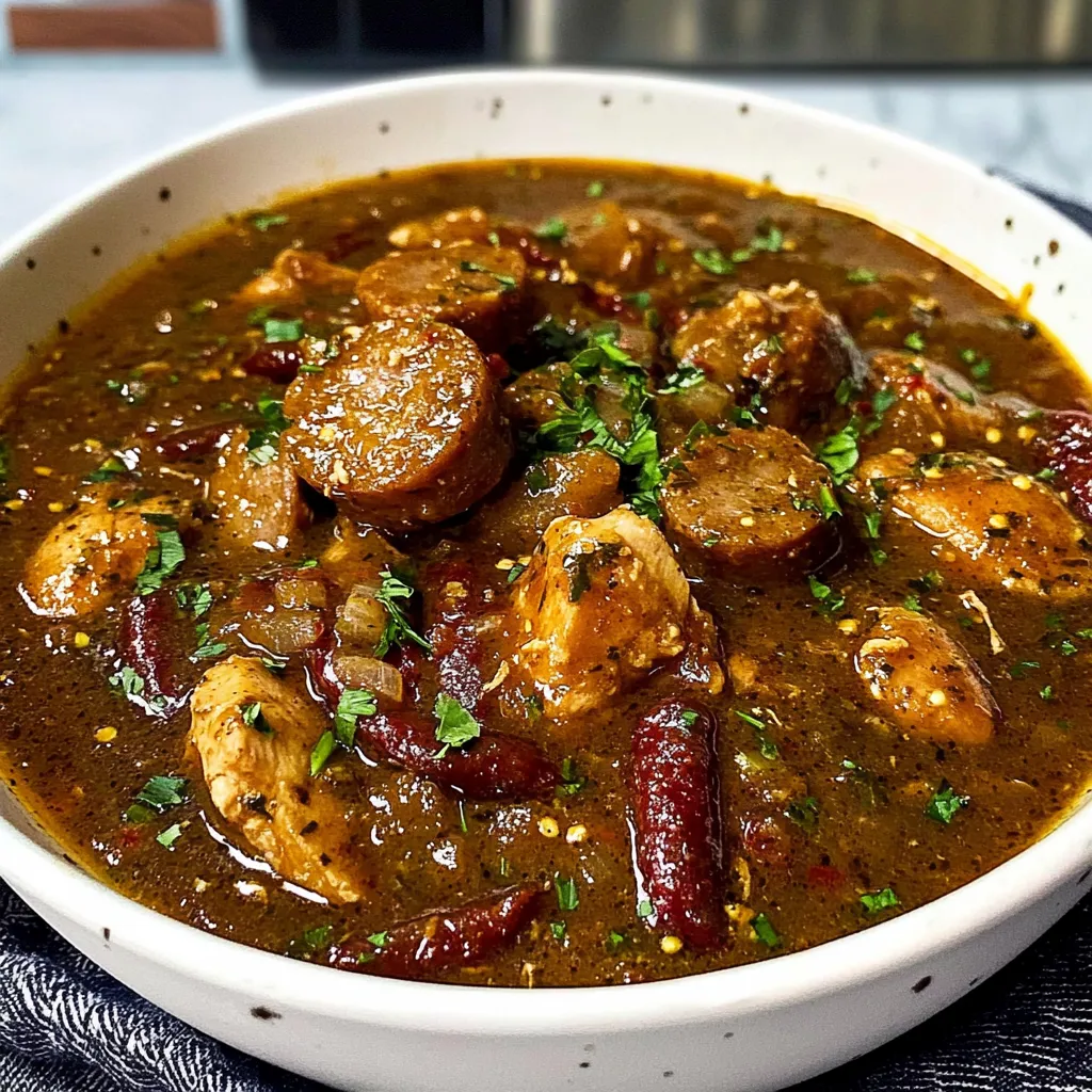 A comforting and flavorful Cajun Chicken and Sausage Gumbo, perfect for cozy dinners.