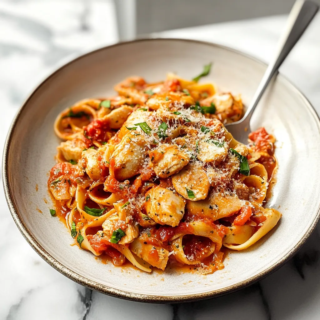 There’s something so cozy about serving up this Chicken Fra Diavolo Pasta! I like to plate a generous portion and top it with a sprinkle of fresh basil and a shower of grated Parmesan. Accompany it with a side of crusty garlic bread—perfect for mopping up every last drop of that spicy, savory sauce. A simple mixed green salad with a zesty vinaigrette makes for a refreshing complement. And if you’re feeling fancy, why not pop open a bottle of red wine? Now that’s a dinner to remember!