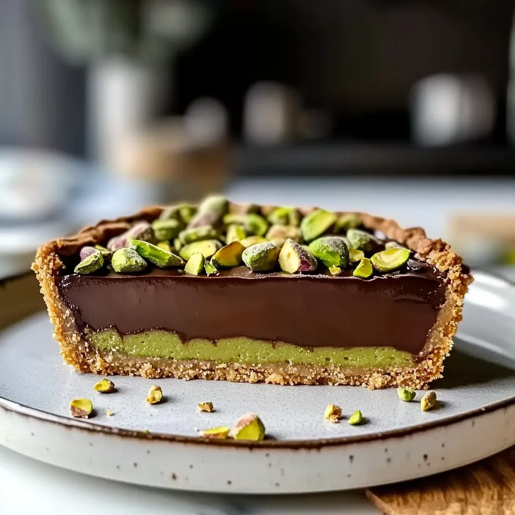 This Chocolate Pistachio Tar is so versatile! I love serving it with a dollop of freshly whipped cream and a side of seasonal berries for that pop of color. It pairs beautifully with a strong cup of coffee or a glass of dessert wine. For a more festive touch, consider drizzling a bit of caramel sauce over the top or serving it alongside a scoop of vanilla ice cream. Your guests will be swooning!
