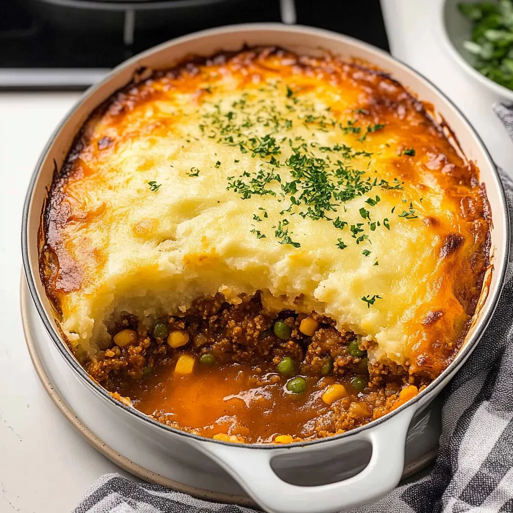 A delightful Classic Shepherd’s Pie that combines rich ground meat, vegetables, and a creamy, buttery mashed potato topping for a cozy, comforting meal.