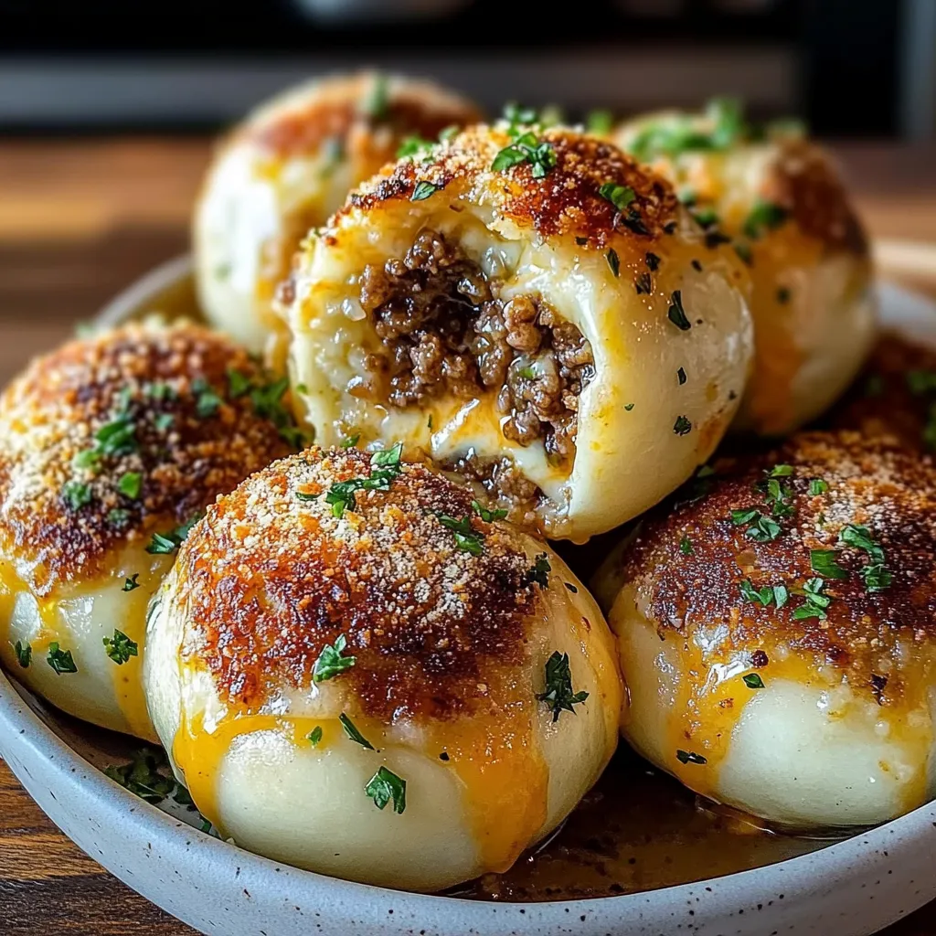 And there you have it, my lovely friends! Garlic Parmesan Cheeseburger Bombs that are not just a meal but a memory waiting to happen. I hope you give this recipe a try and feel the warmth and nostalgia it brings. If you do whip these up, I can’t wait to hear how they turn out for you. Please share your tips and tweaks in the comments below—let’s create a little community of joy and deliciousness! Happy cooking!
