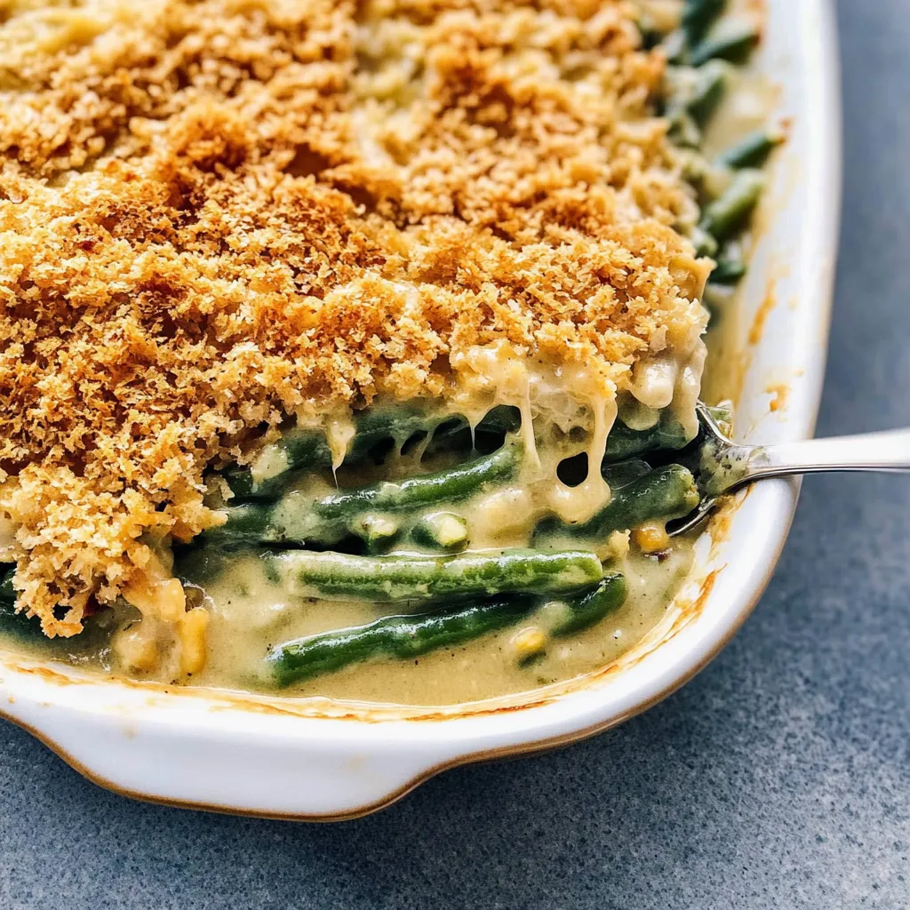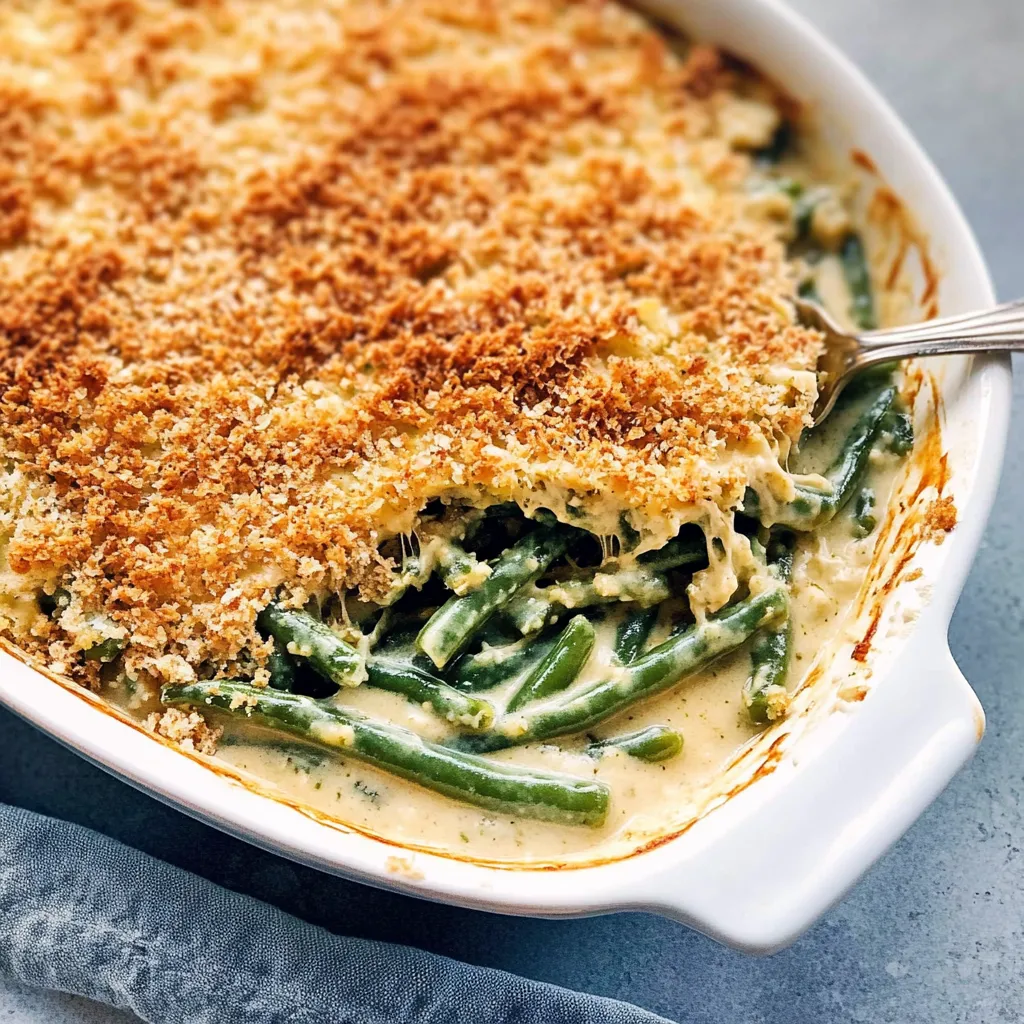 - Want a gourmet twist? Top with homemade breadcrumbs mixed with olive oil and Parmesan cheese instead of fried onions for a delightful crunch!