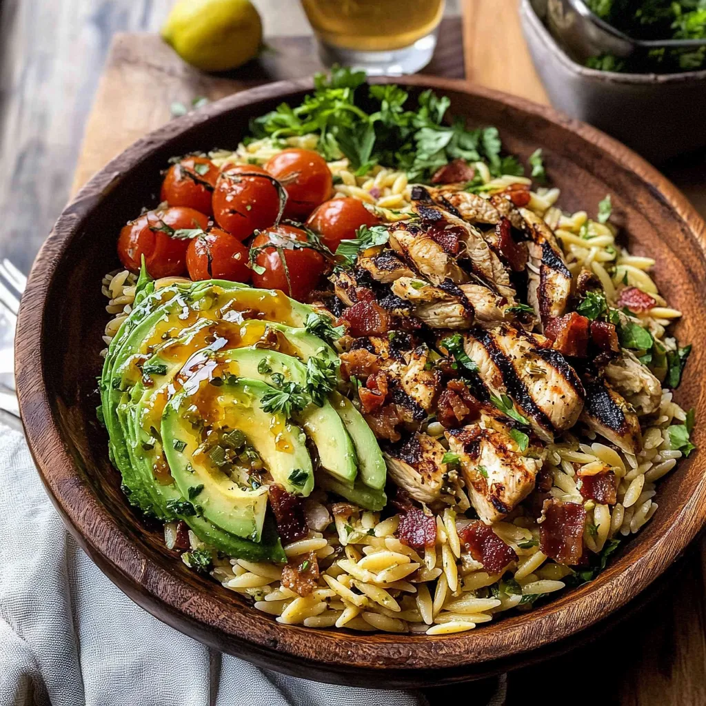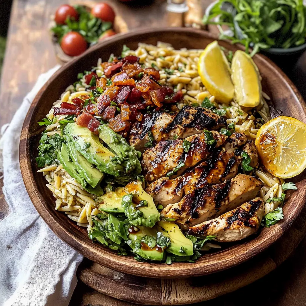 There you have it! Your new favorite dish: Grilled Lemon Herb Chicken Avocado Orzo Salad with Honey Mustard Bacon Dressing. I hope you enjoy preparing it as much as I enjoy sharing it. Don’t forget to let me know how it turns out for you – I love hearing your stories, so drop me a comment, and let’s chat about your twists on this recipe! Happy cooking, and may your kitchen be filled with love and laughter!