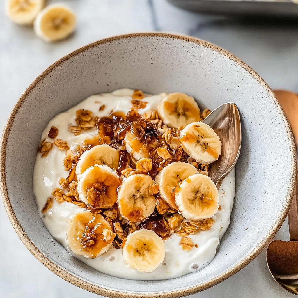 - Prepare the Yogurt Base: While your bananas are cooking, scoop the Greek yogurt into your favorite bowl. You can add a dash of cinnamon or a swirl of honey if you’re feeling fancy—why not, right?