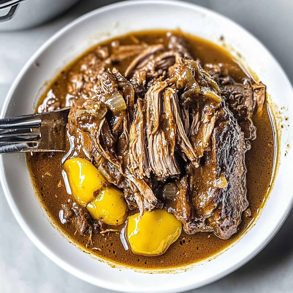 - Shred and serve: Remove the roast from the pot and shred it with two forks. It should fall apart beautifully! Return the shredded meat to the pot and stir to coat it in that luscious gravy.