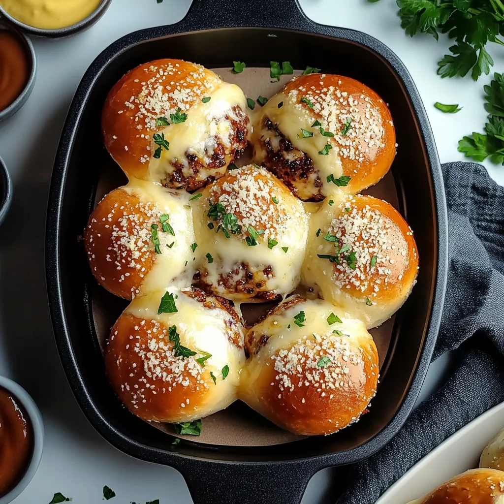 To elevate your meal, serve these garlic parmesan cheeseburger bombs with a side of homemade ranch or a zesty dipping sauce. Pair them with a fresh salad or crispy fries for a well-rounded spread. For a fun twist, consider offering a “build-your-own-bomb” bar with various toppings like avocado, pickles, or hot sauce!