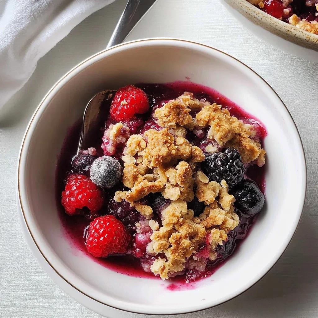 Your Jumbleberry Crumble is a versatile dessert that’s perfect for any occasion. Picture this: you’ve just baked it, and the kitchen smells divine. You scoop a generous portion into a bowl, add a big scoop of vanilla ice cream on top, and pour a hot caramel drizzle over it. For an afternoon treat, you could simply enjoy it alongside a hot cup of coffee or tea, allowing the flavors to meld on your palate. It’s the kind of dessert that invites you to savor every bite! And if it’s a potluck gathering, you’ll be hailed as the baking genius of the evening.