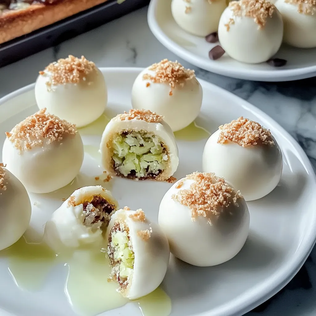 Melt the white chocolate in a microwave or double boiler. Once melted, dip each chilled truffle into the white chocolate, ensuring it is fully coated. Use a fork to lift it out, allowing excess chocolate to drip off before placing it back on the parchment paper. This technique not only adds a professional touch but also enhances the flavor!