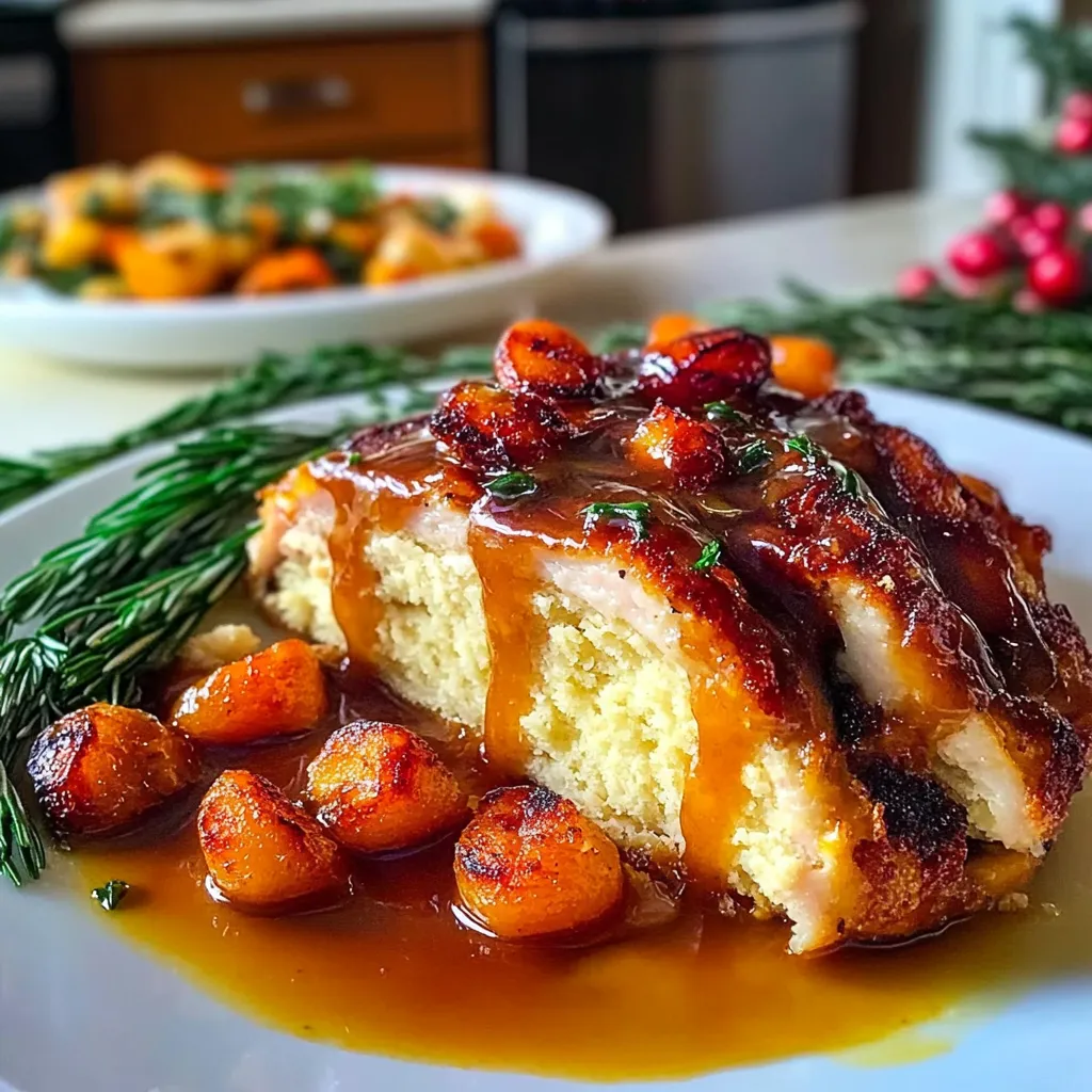 This feast deserves to shine, so let’s talk about how to present it beautifully! Serve your turkey slices on a large platter, garnished with fresh herbs. Surround it with the colorful roasted vegetables. A side of fluffy mashed potatoes or creamy polenta would complement this dish perfectly. Pair it with a bright, crispy green salad to balance the rich flavors. And let’s not forget dessert—finish off with a warm slice of spiced apple pie or rich chocolate yule log. As everyone gathers around the table, let the warm scents and laughter fill the air. Isn’t that what the season is all about?