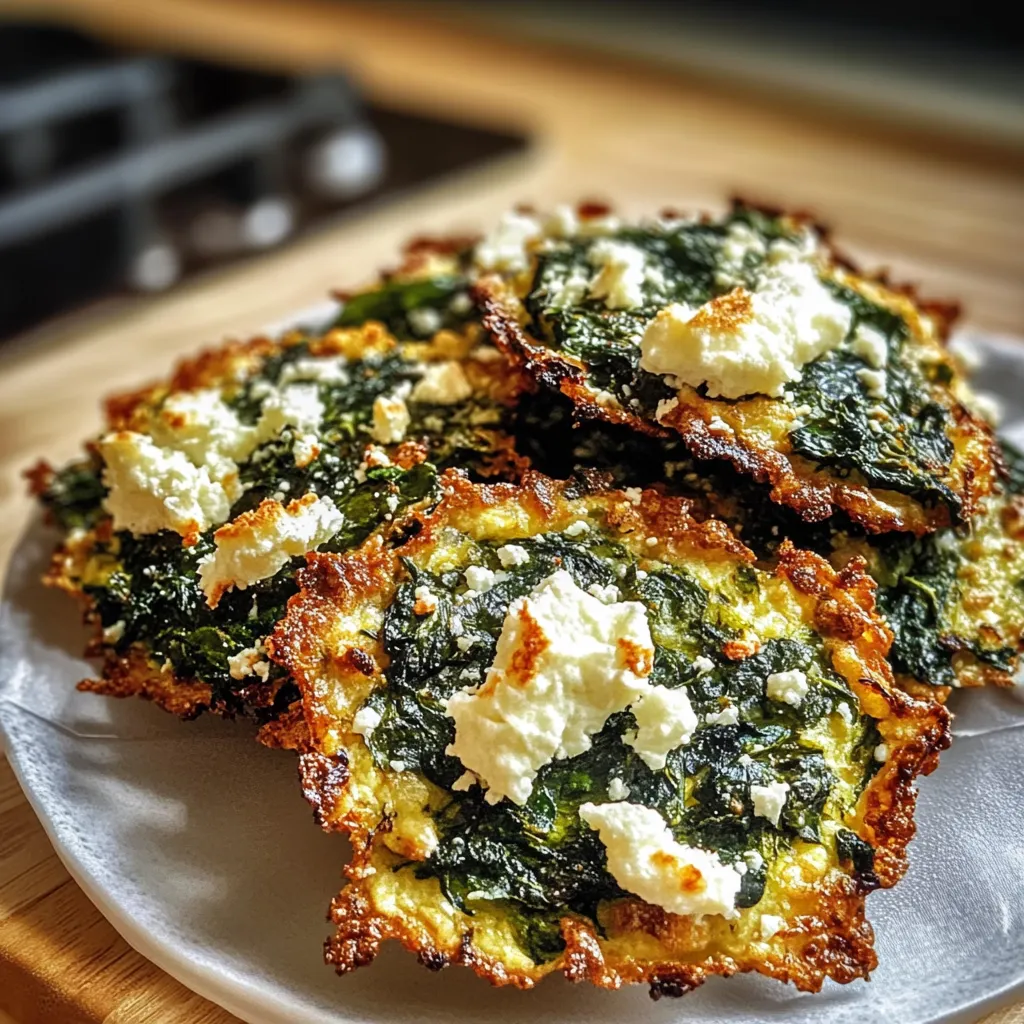 Now, let’s talk about how to present these lovely morsels! I love serving my Mediterranean Spinach Feta Crisps alongside a refreshing Greek salad drizzled with olive oil and lemon. The cool crunch of the salad complements the warm, cheesy goodness of the crisps wonderfully. For a little indulgence, you can serve them with a dollop of tzatziki sauce for dipping. A chilled glass of white wine or sparkling lemonade would pair beautifully with your spread, making it feel like a mini vacation! Picture a cozy evening, warm lights, and good company—all coming together to sav,or these bites of nostalgia. It’s pure magic!