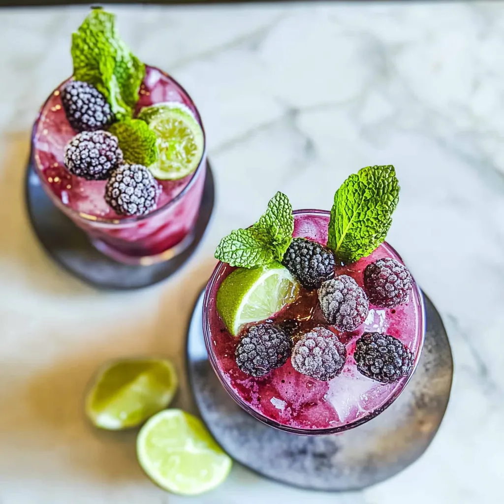 - Finally, garnish with more fresh mulberries and mint sprigs on top. Maybe even a lime wedge to add that delightful pop of color!