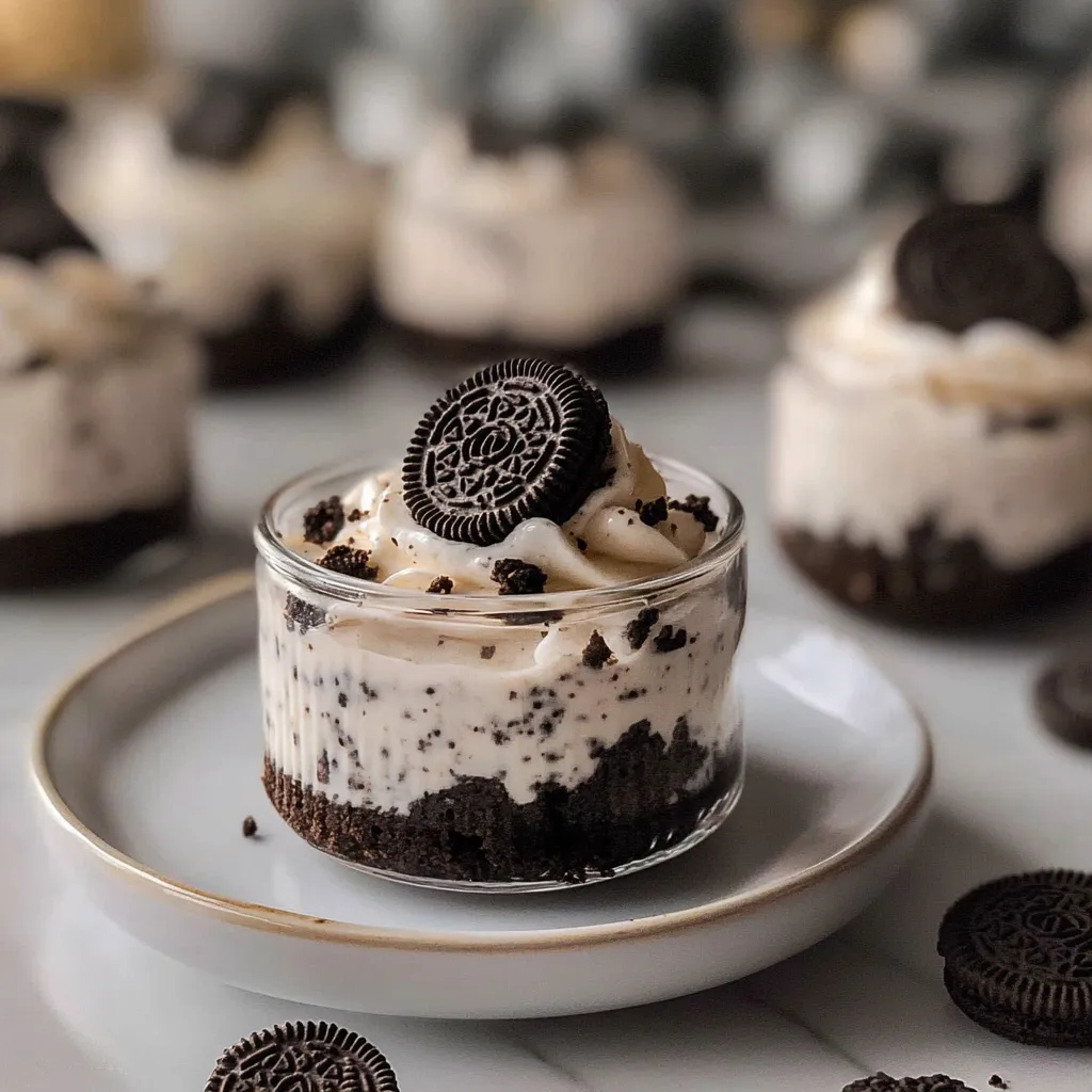 - Garnish: When you’re ready to serve, crush a few additional Oreos and sprinkle them on top of each cheesecake cup for that gorgeous finishing touch. Feel free to add whipped cream if you want.