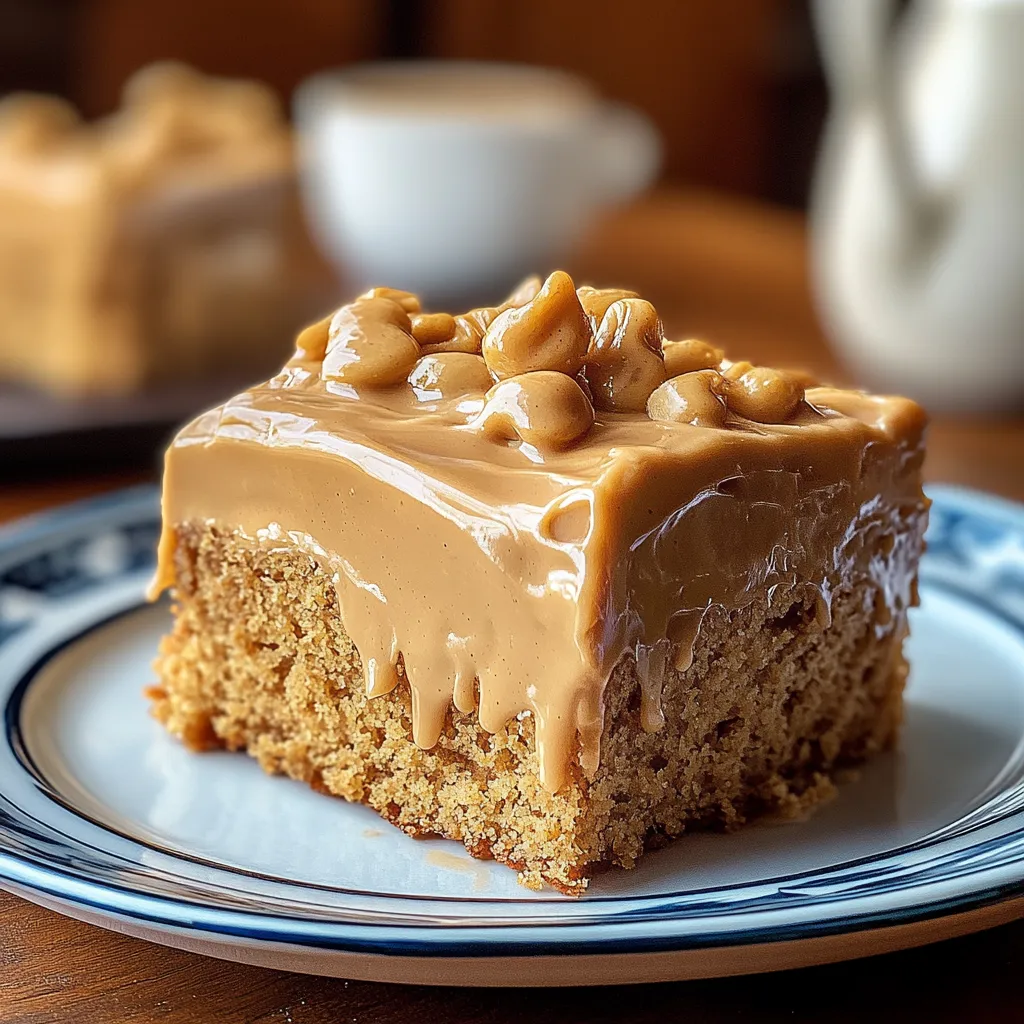 A delightful Peanut Butter Sheet Cake topped with Fluffy Peanut Butter Frosting, perfect for any occasion.