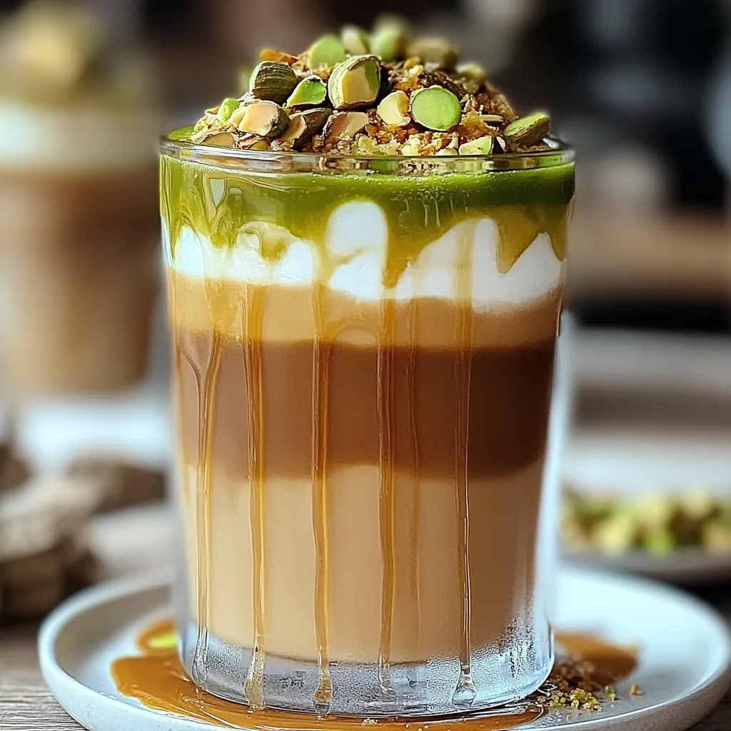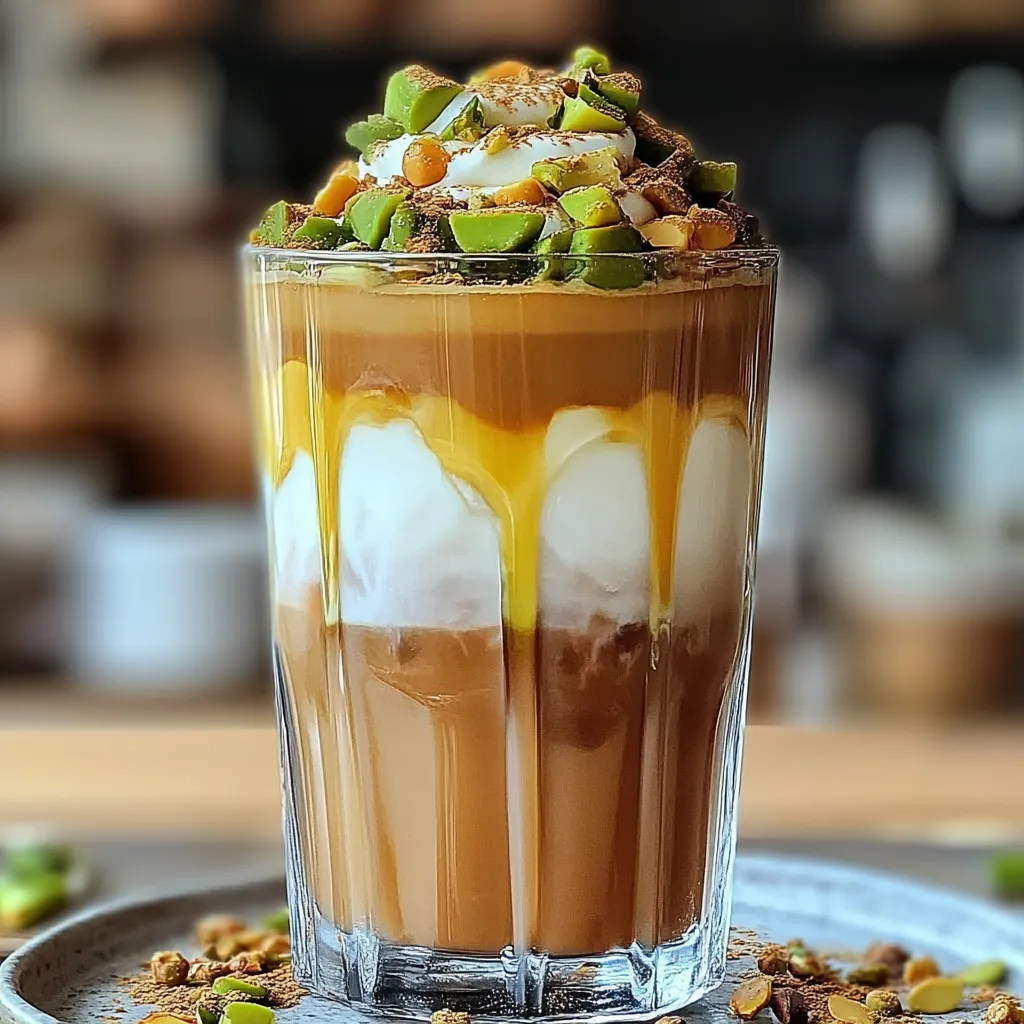 Indulge in a rich pistachio cardamom iced coffee This refreshing drink is perfect for warm days blending unique flavors for an unforgettable taste