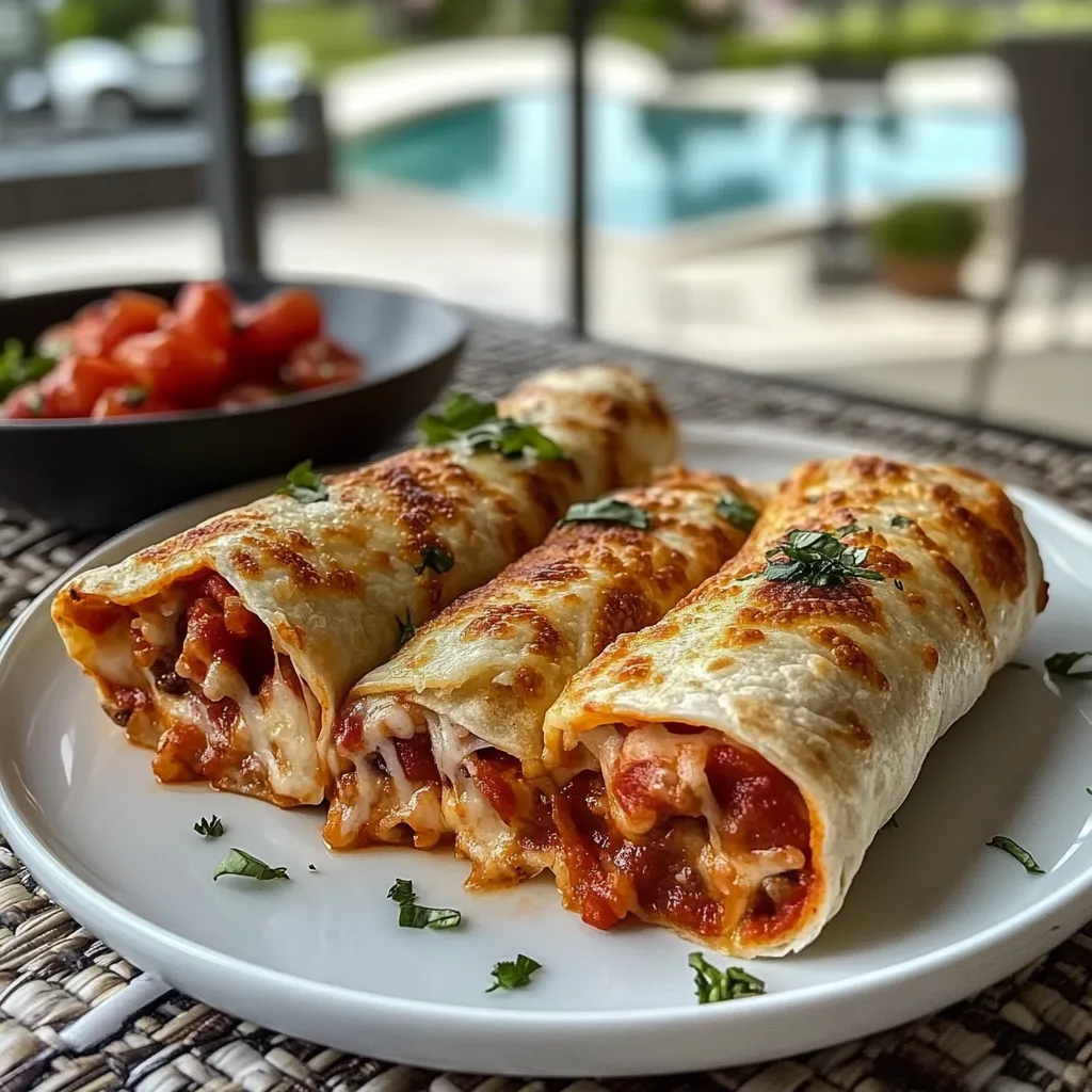 These Pizza Burritos are perfect all on their own, but why not elevate the experience? Serve them with a side of marinara sauce for dipping, or maybe a fresh green salad to balance the flavors. A chilled bottle of sparkling water or a light beer perfectly complements the cheesy indulgence. If you’d like something a little sweeter to finish, pair your meal with a slice of decadent chocolate cake! Each bite of these Pizza Burritos takes me back to my cozy movie night — just the perfect combination of savory delights and warm memories.