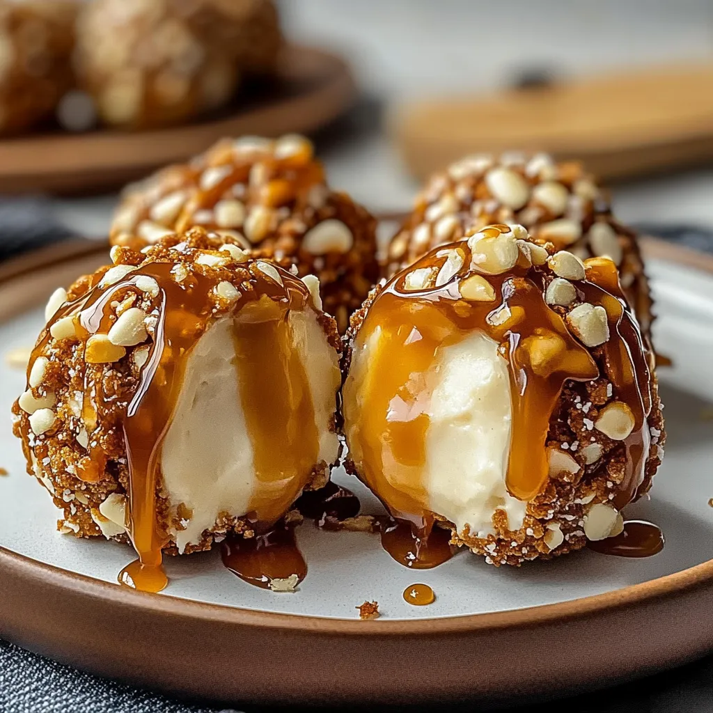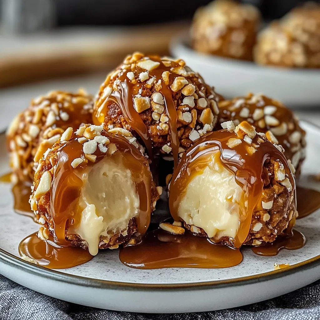 - Finish with flair. After the cheesecake balls have chilled, drizzle the warm caramel over the top and sprinkle with a touch more sea salt. This is where they become truly irresistible!
