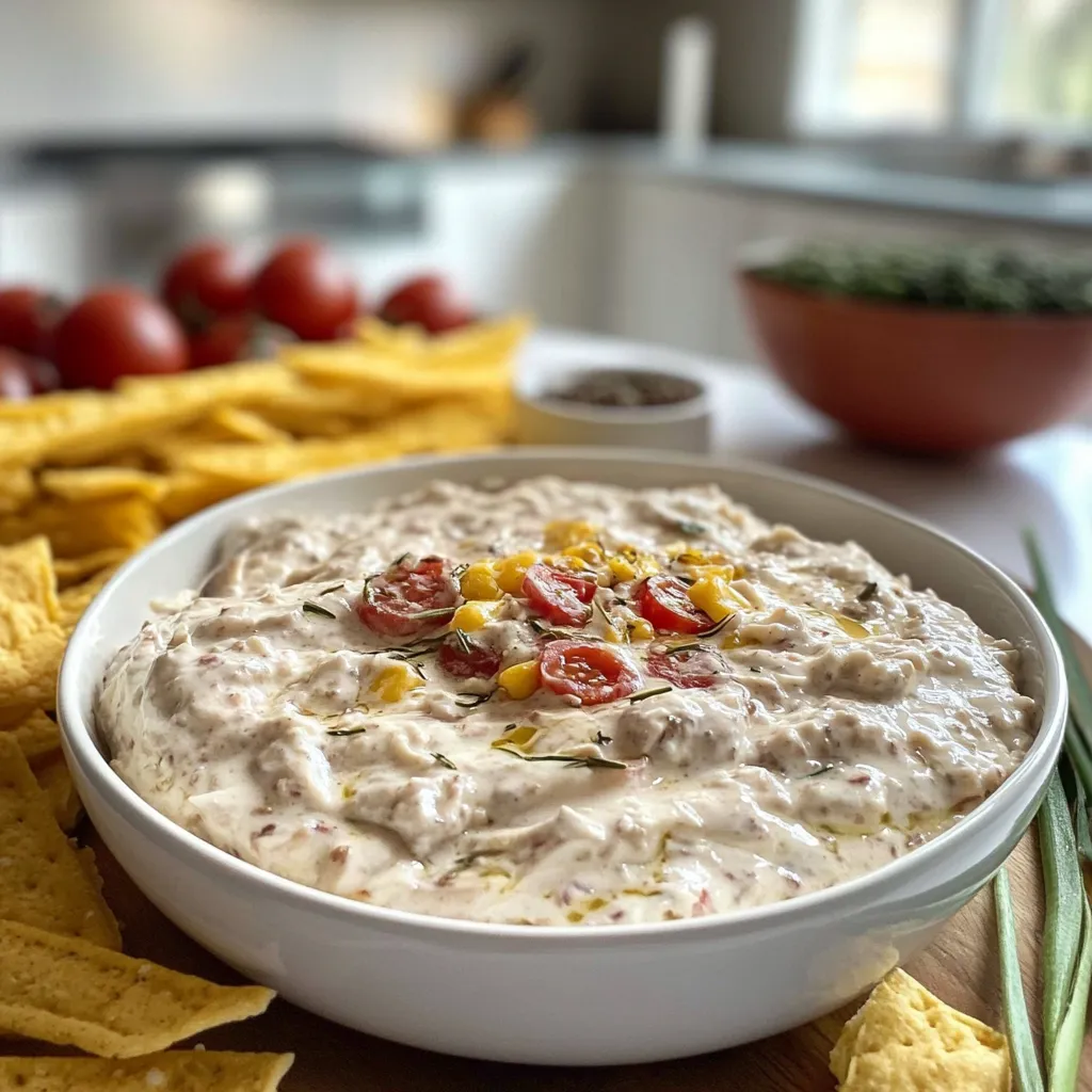 Warm, cheesy, and oh-so-satisfying, this dip shines when served with an array of dippers. I love to serve it with crisp tortilla chips or crunchy pita chips, but fresh veggie sticks like carrots, celery, and bell peppers work beautifully too! If you’re feeling a bit fancy, try it on a toasted baguette slice for a delightful appetizer experience.
