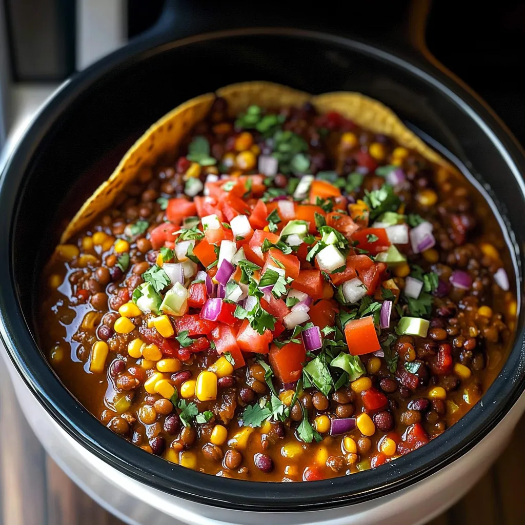 Savor SLOW COOKER LENTIL TACO CHILI This easy recipe offers a flavorful healthy meal with minimal effort Enjoy a perfect blend today