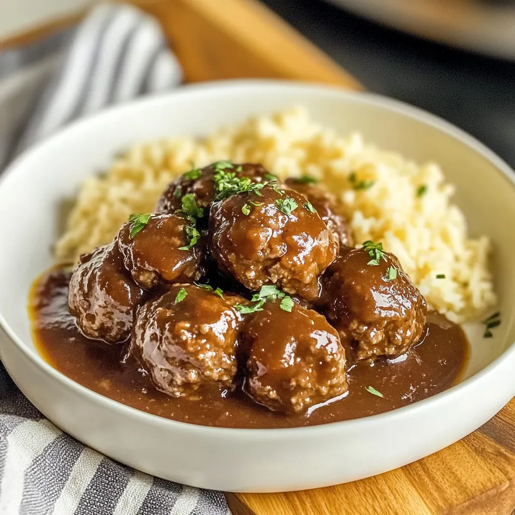 Serve your Slow Cooker Salisbury Steak Meatballs over fluffy mashed potatoes, steamed rice, or even mashed cauliflower for a lighter option. Pair with a side of green beans or a fresh salad to create a well-rounded meal. For a fun twist, consider serving the meatballs in a sub sandwich or atop a bed of fresh greens for a hearty salad!