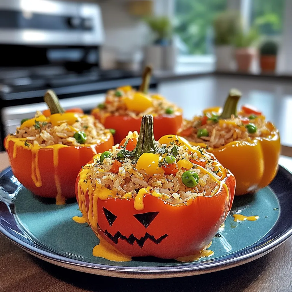 Enjoy a delicious SPOOKTACULAR recipe for shredded chicken rice stuffed peppers Perfect for Halloween or any fun meal Try this tasty dish today