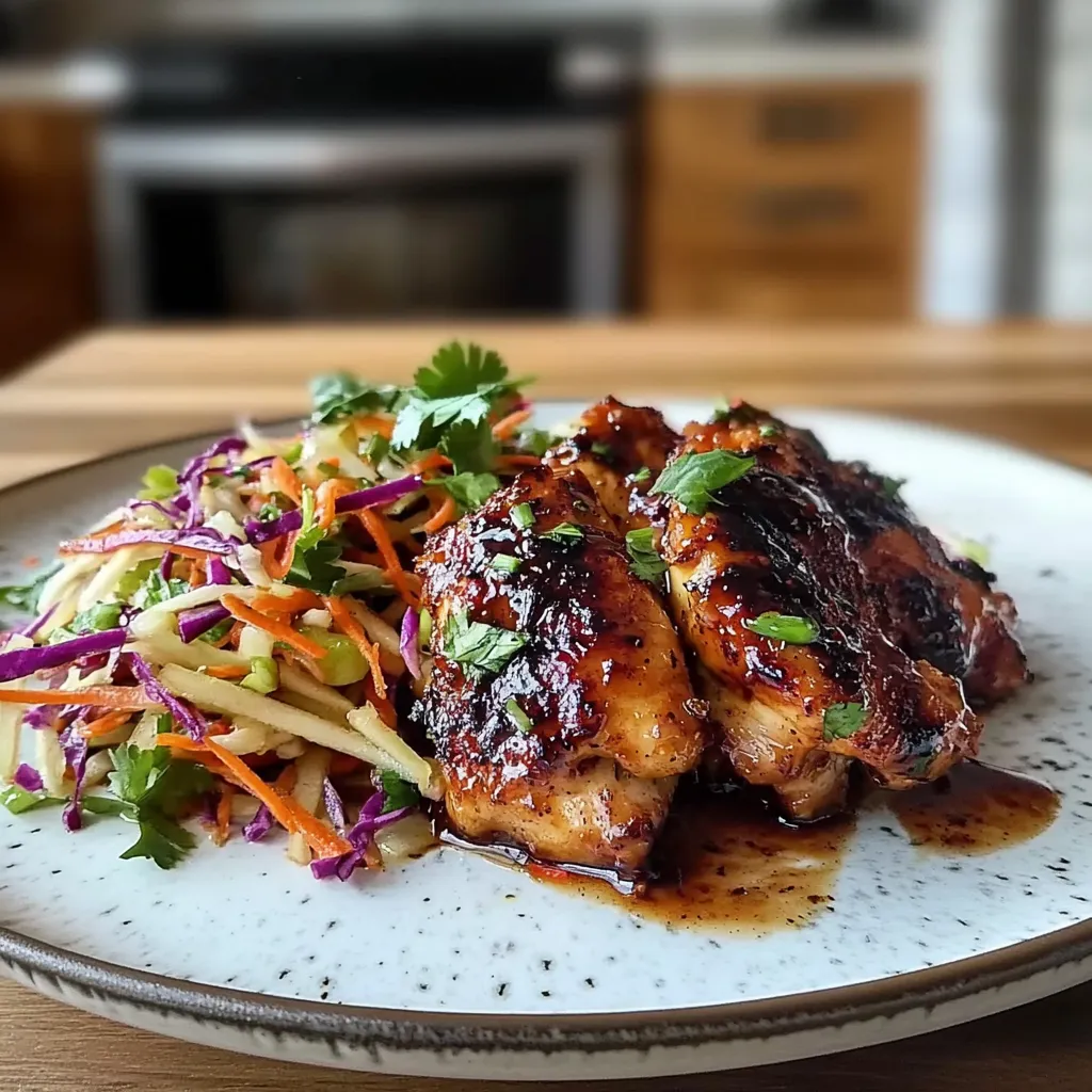 - Plate It: Once the chicken is done, let it rest for a few minutes before serving to keep it juicy. Spoon some of that sticky glaze from the skillet over the chicken and serve it up with a generous helping of slaw on the side.