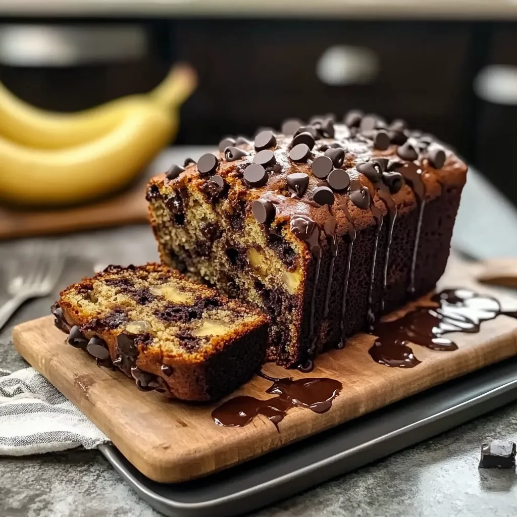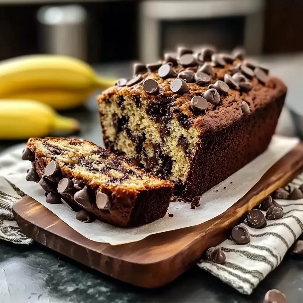 Indulge in the ultimate chocolate chip banana bread delight Experience super moist texture and rich flavor in every delicious slice Perfect for dessert