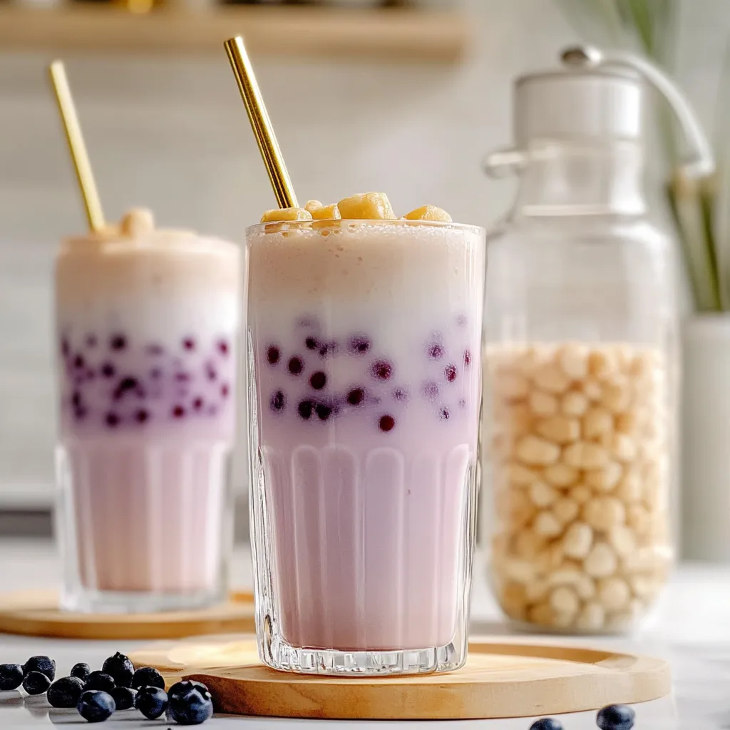 - Combine: In a large glass, pour in your brewed tea, then add the creamy taro mixture on top. Stir gently, letting the flavors blend together. Oh, and don’t forget—if you enjoy those chewy tapioca pearls, add them at this stage!
